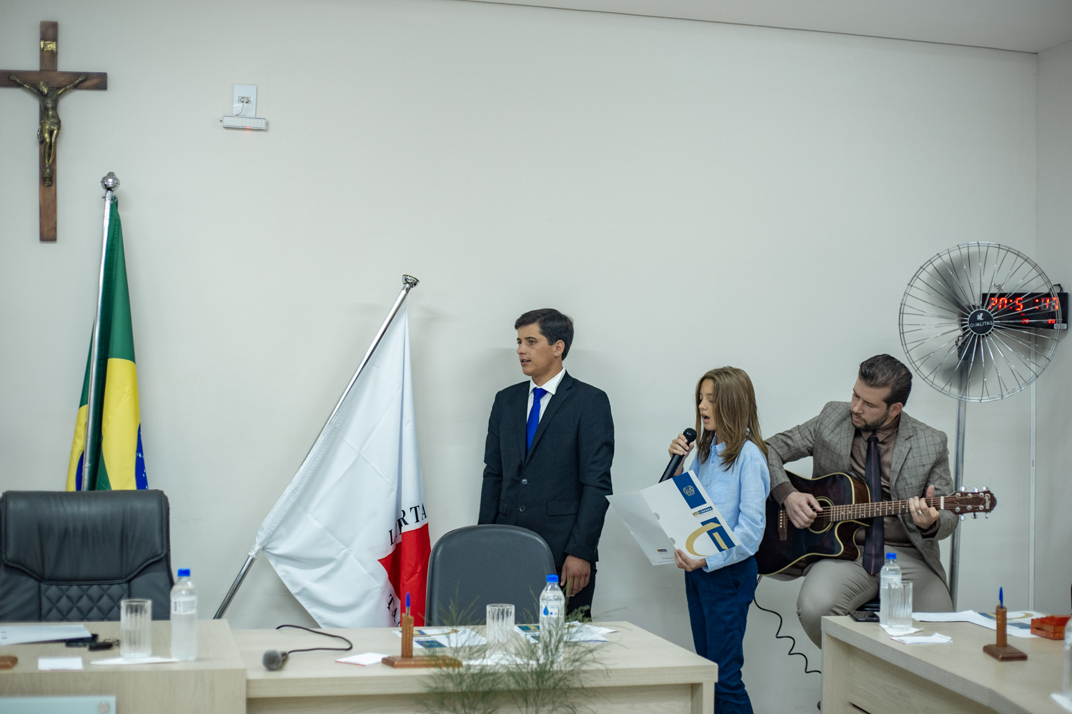 Elizeu e seu filho Davi cantam o hino nacional